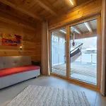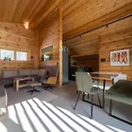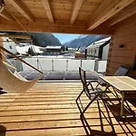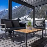 숙소에는 테라스도 있습니다. 이 호텔은 스노우 서핑, 스키로 유명합니다.